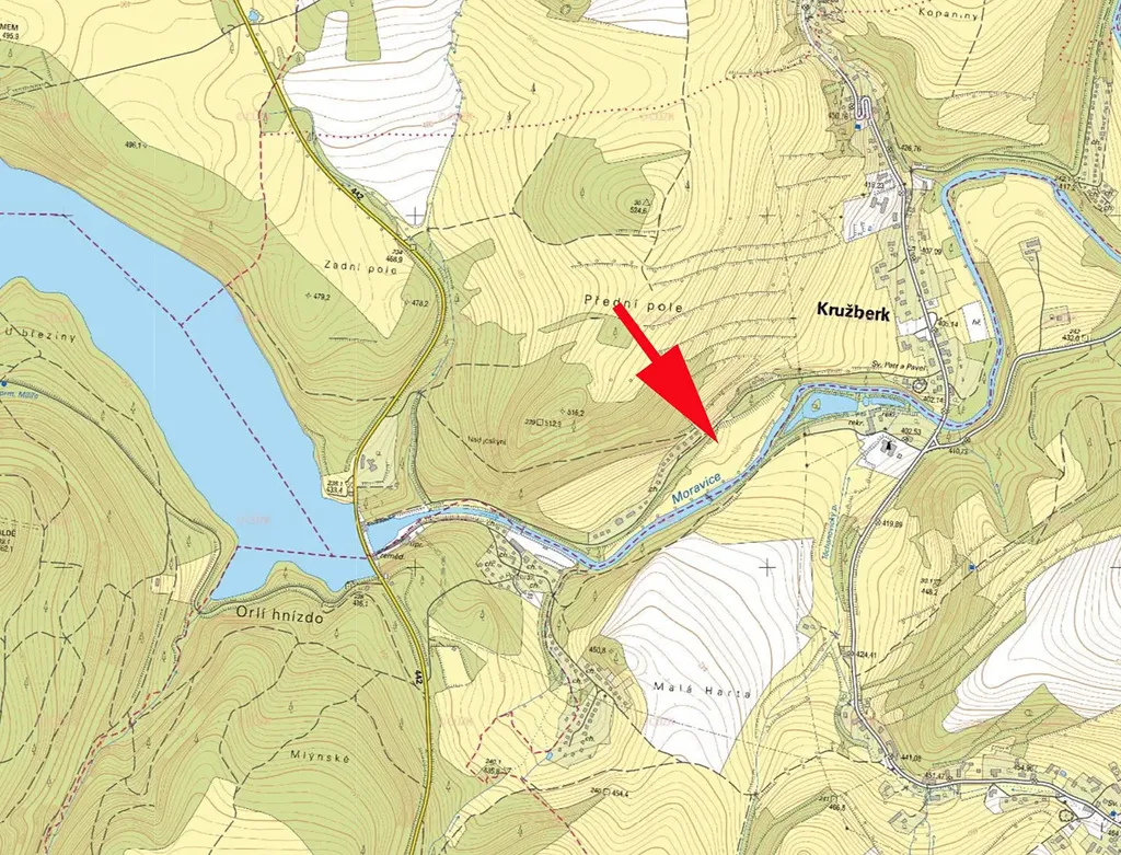Prodáme pozemek, louku částečně porostlou stromy (ostatní plocha, možno snadněji kácet) v k.ú. Kružberk, parc.č. 339/38, leží mezi řekou Moravicí a silnicí k chatkám
