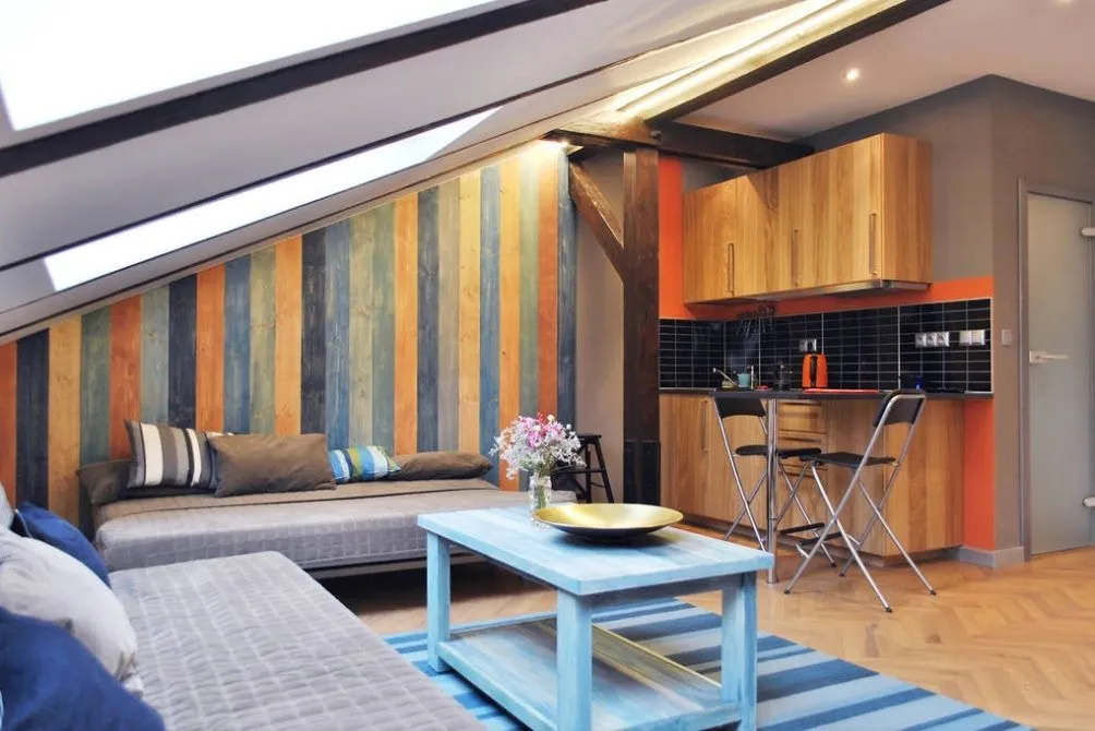 Byt je plně zařízen a vybaven domácími spotřebiči: pračka, kuchyňská linka se vším potřebným pro vaření, rychlovarná konvice, manželská postel, rozkládací pohovka, 2 skládací židle. V bytě je také výtah a klimatizace.
