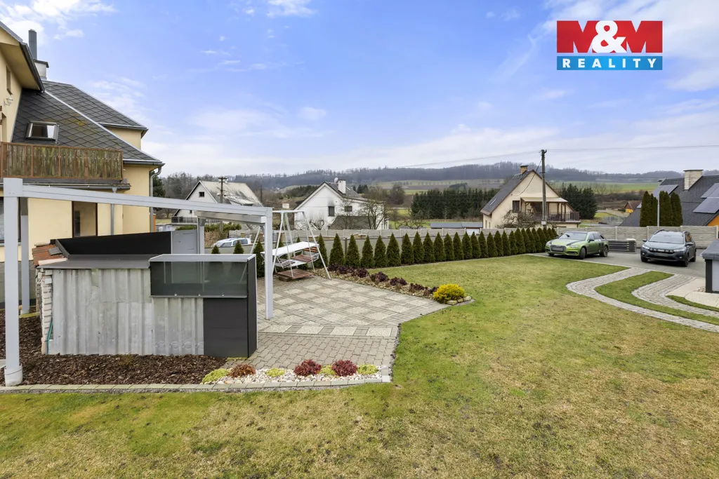 K nemovitosti náleží velkorysý pozemek, na kterém se nachází krásně udržovaná předzahrádka, dvě garáže a moderní tepelné čerpadlo pro efektivní vytápění. Nemovitost je situována v klidné části obce, což zaručuje příjemné bydlení. Ideální volba pro rodiny hledající klid a pohodlí.