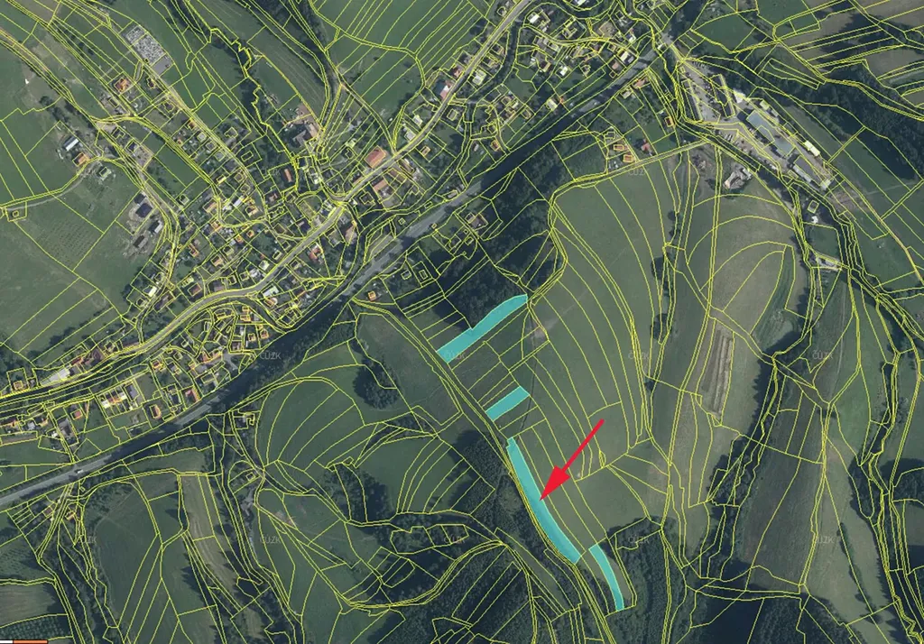 Prodáme pole (orná půda) s částečným porostem stromů (možno vytěžit) v k.ú. Lhota u Vsetína, parc. č. 315