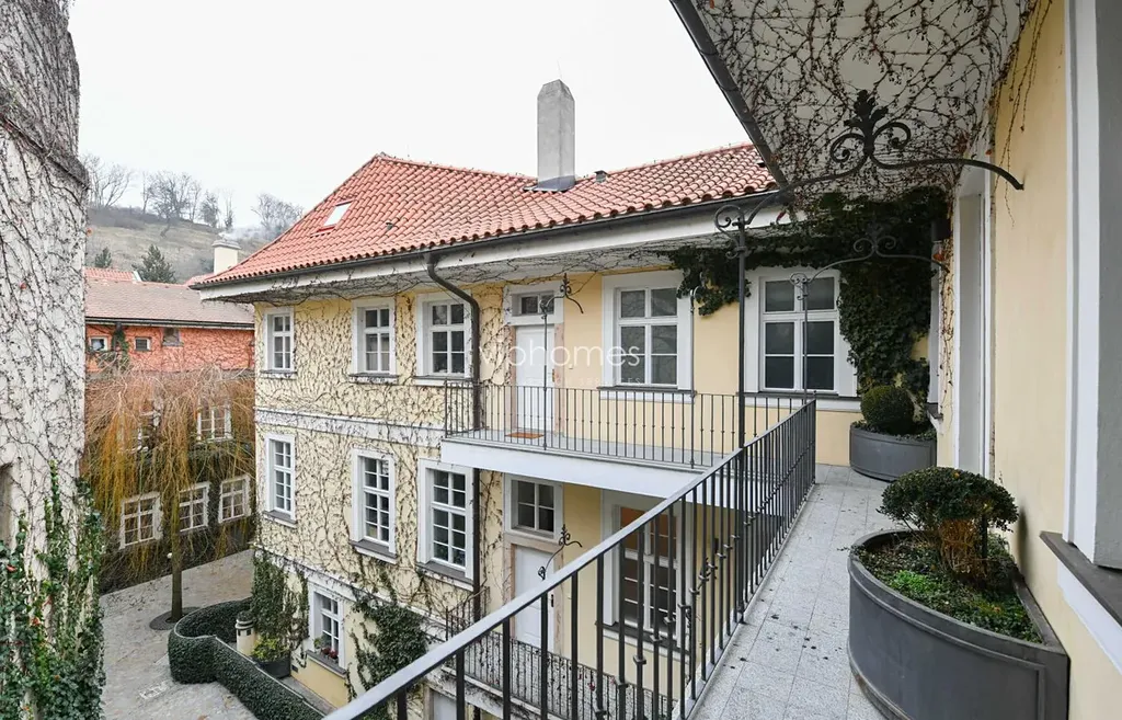 Byt je součástí komplexu čtyř historických budov s terasami, zahradami, dvorními prostranstvími a kašnou. Díky citlivé, pečlivé a jednotné rekonstrukci té nejvyšší úrovně, se z tohoto rezidenčního komplexu stalo místo, které si podrželo svou historickou identitu a přitom je komfortní a okouzlující zároveň. Výjimečnost této nemovitosti je dána atraktivní lokalitou na Malé Straně, avšak na samostatném, tichém a jedinečném místě mezi Vlašskou ulicí a zelení petřínského parku, v blízkosti několika významných zastupitelských úřadů, chrámu sv. Mikuláše, Karlova mostu a Pražského hradu.