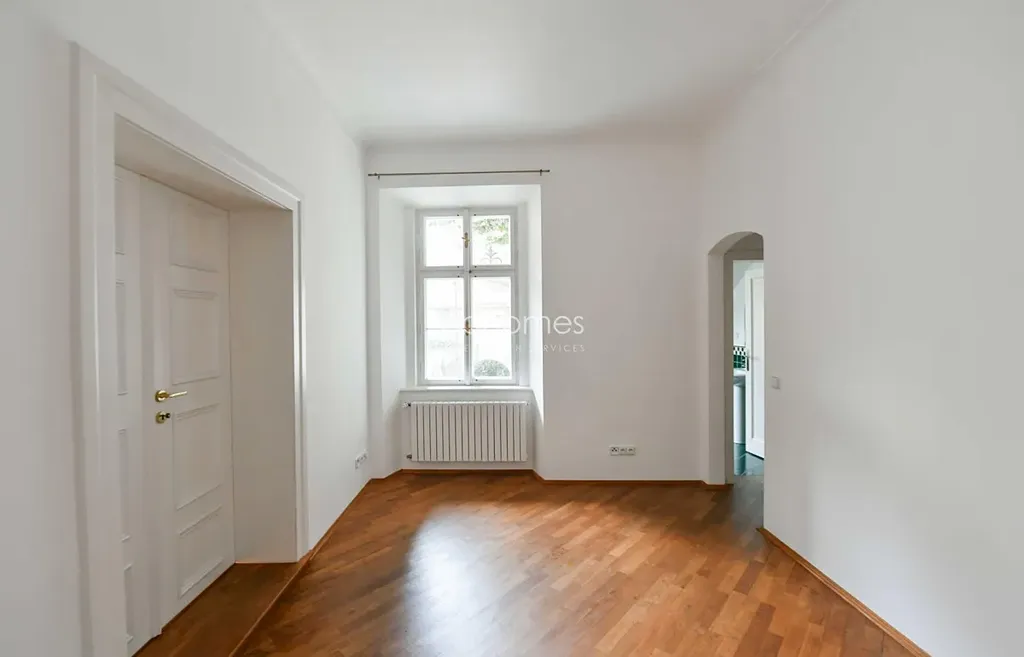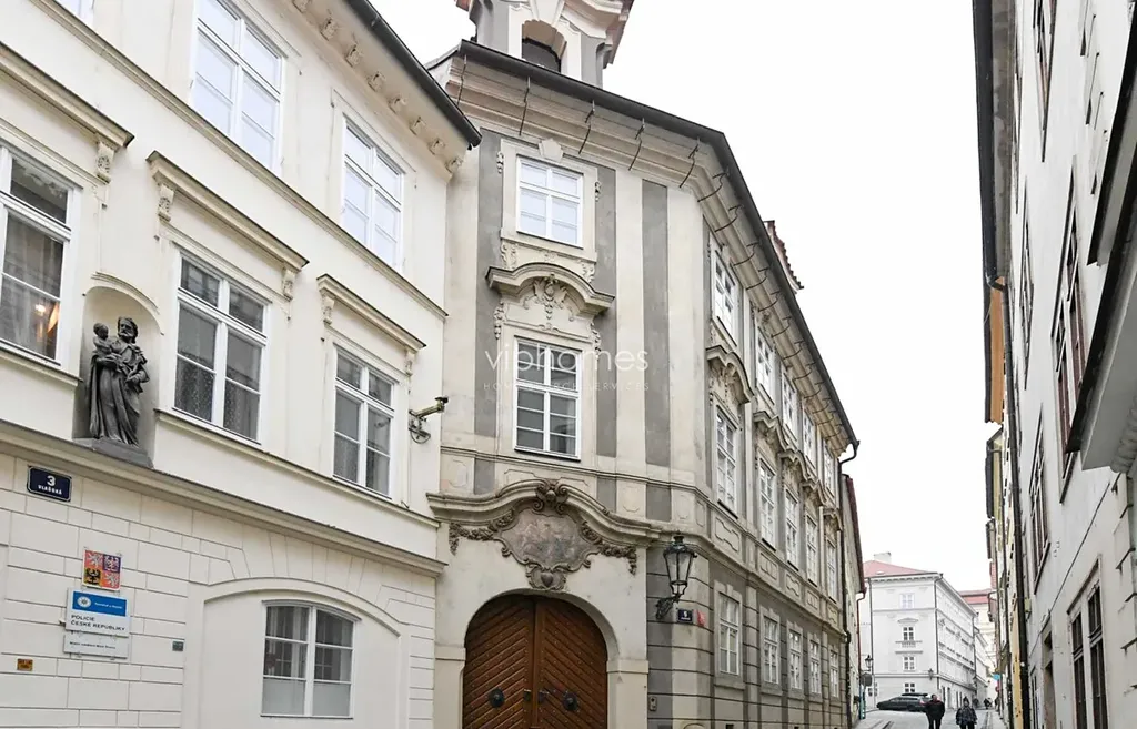 Půvabný byt s upraveným nádvořím a kašnou situovaný ve druhém patře kompletně zrekonstruované budovy s 24 hod recepcí, v přímém sousedství historických památek Malé Strany a Pražského hradu. Malá Strana je sídlem mnoha významných kulturních a vládních institucí a 14 velvyslanectví.