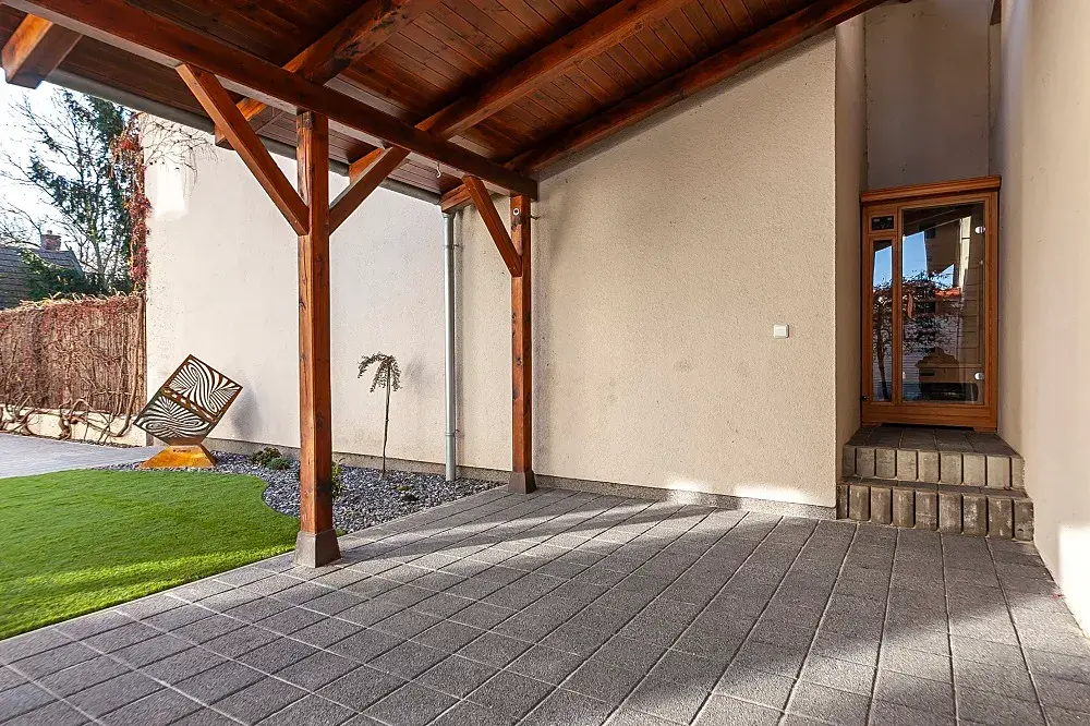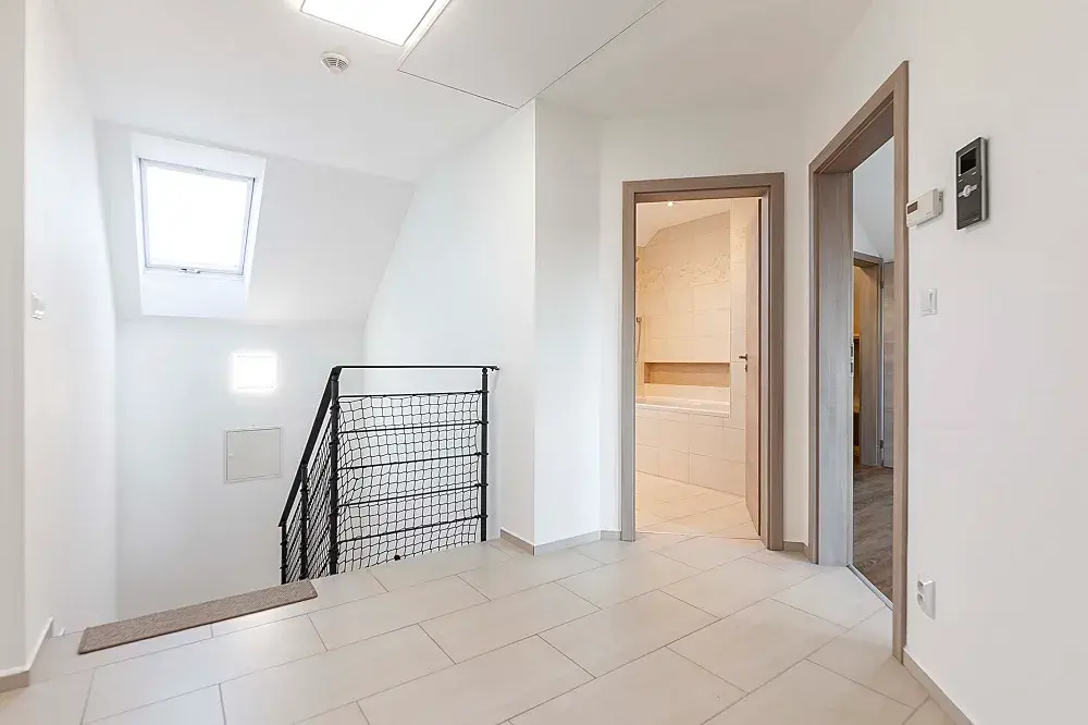Dům je vybaven klimatizací, fotovoltaikou a nabíjecí stanicí pro automobil, předokenními roletami s el. pohonem, krbem, datovými rozvody, pokrytím WI-FI v celém domě, zabezpečovacím systémem s možností napojení na PCO, podlahovým vytápěním, venkovním skladem/dílnou, infrasaunou. Topení a teplou vodu zajišťuje plynový kondenzační kotel. Parkování je možné na dvoře nemovitosti, případně před domem. Majitel domu volil při výstavbě domu nadstandardní zařizovací prvky od kvalitních výrobců.