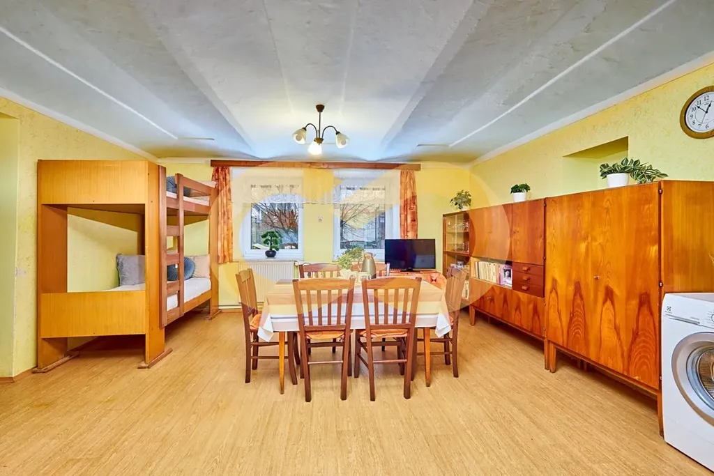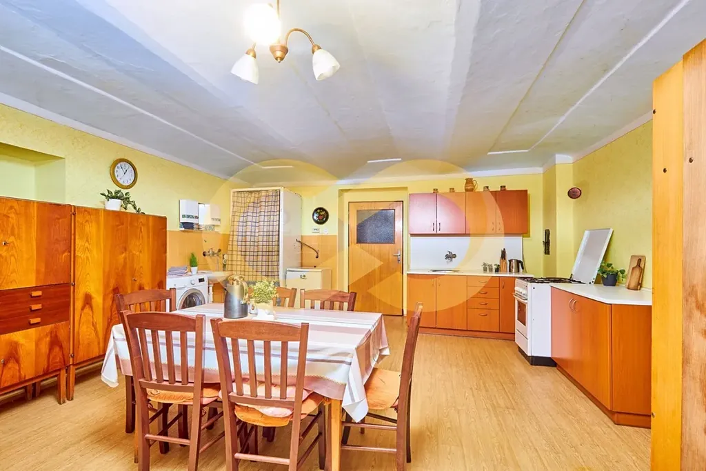 Obytná část domu je určená k rekonstrukci, ale stačí pár oprav a můžete se klidně nastěhovat a další zásahy provádět postupně, jak vám to rozpočet a čas dovolí.