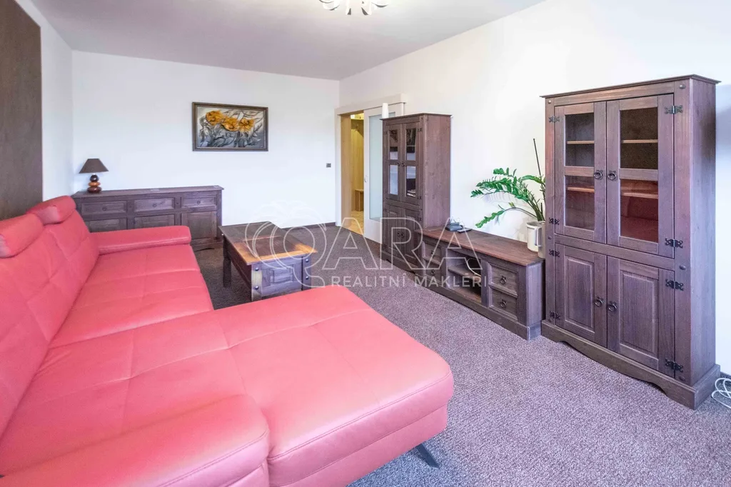 Byt o velikosti 66 m2 se pronajímá s vybavením na fotografiích, tedy celkově vybavená ložnice, předsíň, obývací pokoj s nábytkem i sedačkou, koupelna a kuchyň (kuchyňská linka, lednice s mrazákem, mikrovlnná trouba, el. trouba a varná deska).
