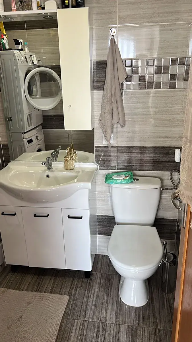 Byt je zařízený. Kuchyň je vybavená kuchyňskou linkou a elektrospotřebiči.
