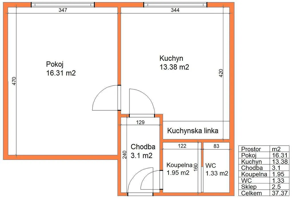 Jedná se o byt s původní dispozicí 1+1, 38 m2, užíván jako 2+kk. Byt v minulosti prošel částečnou rekonstrukcí (podlahy, částečně nová elektroinstalace, nový boiler, kuchyňská linka včetně spotřebičů, interiérové dveře, nátěr bytového jádra). Pronajímá se jako nezařízený, pouze se spotřebiči umístěnými v kuchyňské lince (pračka, pečící trouba, varná deska, odsavač par).