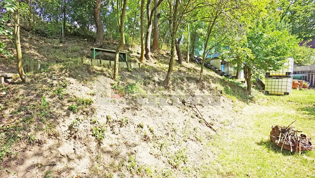 Svažitý pozemek je orientovaný na osluněnou stranu, nejlepší místo pro umístění chaty je na horní terase, s umístěním kanalizační jímky na spodní terase. Umístění chaty na horní terase umožňuje jeřábem osadit montovanou chatu na patky nebo kontejnerový dům, s příjezdem jeřábem ze shora.