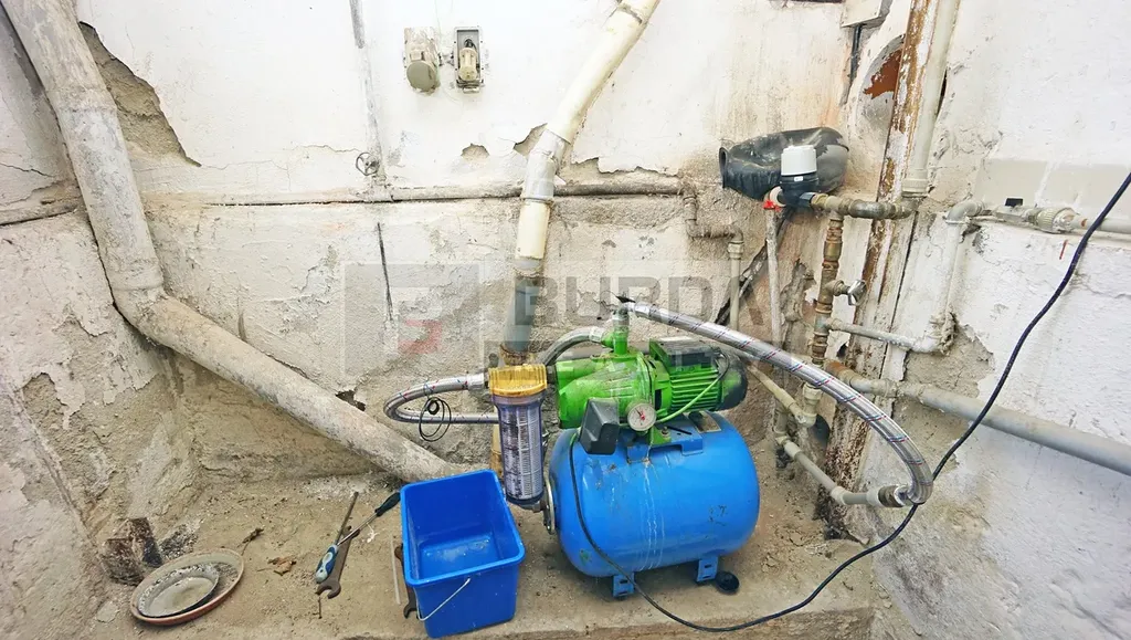 Dům je napojen na obecní vodovod, přičemž voda z vodovodu je přivedena do sklepa, kde je vodoměr a hlavní uzávěr, a odtud je voda vedena do dřezu v kuchyni a do sprchy v koupelně. Do umyvadla, WC, do vany a do pračky je přivedena voda ze studny. Kopaná skružová studna se nachází ve venkovním sklípku na zahradě.