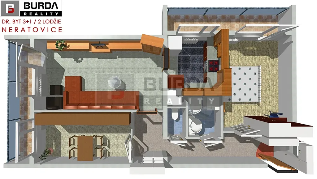 Nabízíme Vám exkluzivně k prodeji družstevní byt 3+1/2L se dvěma zasklenými lodžiemi, orientovaný na osluněnou stranu, v 6. patře (7. nadzemní podlaží) kompletně revitalizovaného panelového domu ve velmi oblíbené lokalitě v Neratovicích.