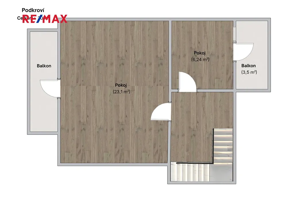 ✅ Dva samostatné pokoje v podkroví, každý s balkonem