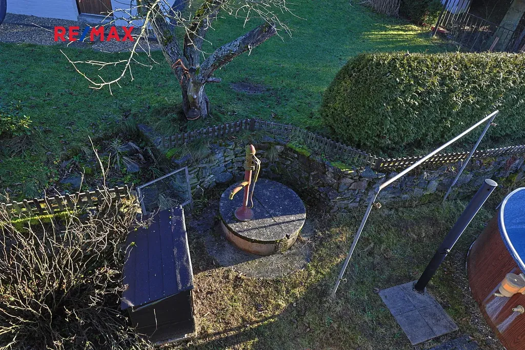 • Vlastní kopaná studna — zajišťuje vlastní zdroj vody, ekonomický provoz a nezávislost na veřejném zásobování. Studna je funkční a napojená na domovní vodárnu umístěnou v garáži