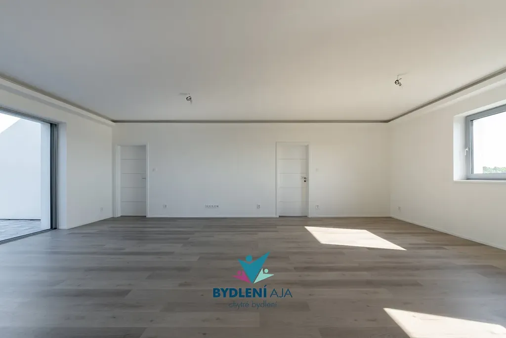 1x ložnice se šatnou a terasou, 2x dětský pokoj, pracovna, kuchyně s obývákem, spižírna, technická místnost, 2 x koupelna, 2x wc, 1x bidet a garáž pro dva velké rodinné vozy, velká terasa z obývacího pokoje.