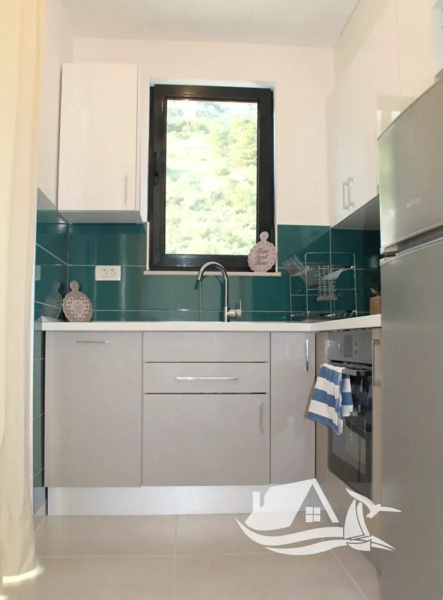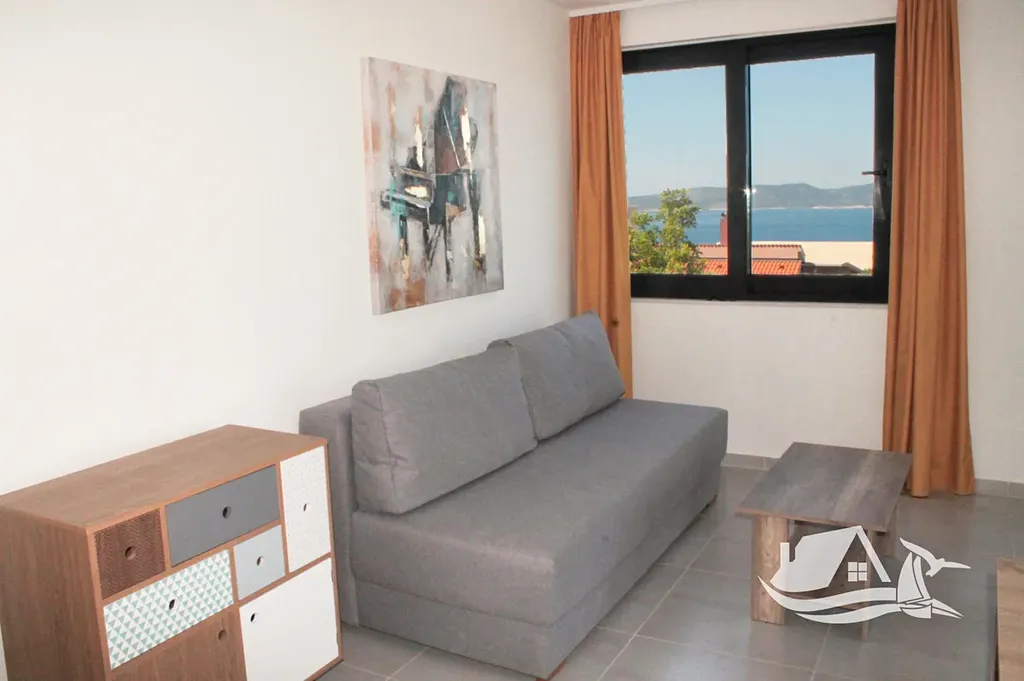 V přízemí a prvním patře se rozkládá hlavní mezonetový byt o ploše 212 m². Vstupní úroveň zahrnuje prostorný obývací pokoj propojený s jídelnou a kuchyní, toaletu pro hosty a přímý vstup na terasu s bazénem o velikosti cca 30 m². Sluneční terasa kolem bazénu nabízí ideální prostor pro odpočinek s výhledem na moře a okolní ostrovy. V horním patře tohoto bytu se nacházejí tři prostorné ložnice, každá s vlastní koupelnou, a balkon o ploše 15 m² s panoramatickým výhledem.