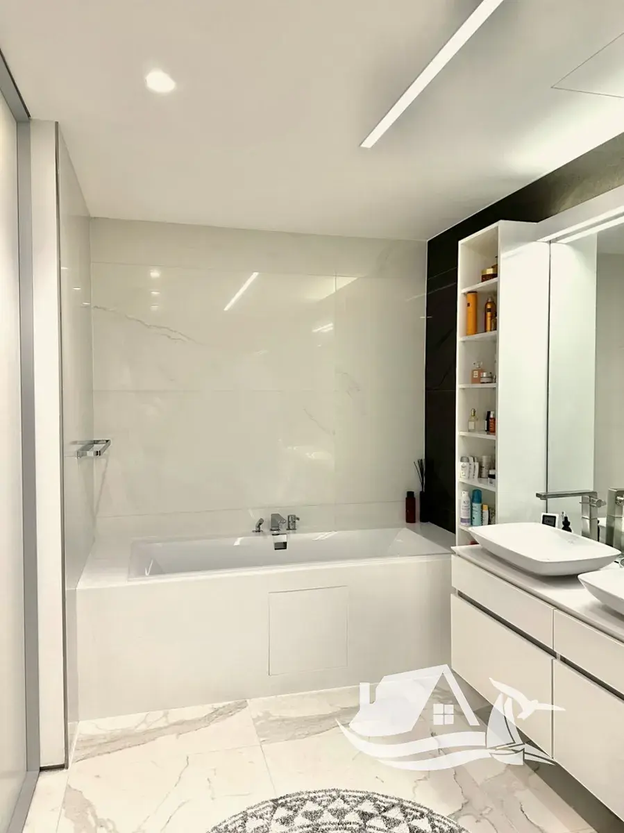 Apartmán má dvě ložnice, z nichž každá nabízí dostatek místa pro pohodlné bydlení i úložné prostory. Hlavní ložnice může sloužit jako klidné zázemí pro páry, druhý pokoj je ideální pro děti, hosty či jako pracovna. V bytě se nacházejí dvě koupelny – jedna en-suite, druhá přístupná z chodby. Obě jsou moderně zařízené, vkusně laděné a vybavené vším potřebným pro každodenní komfort.
