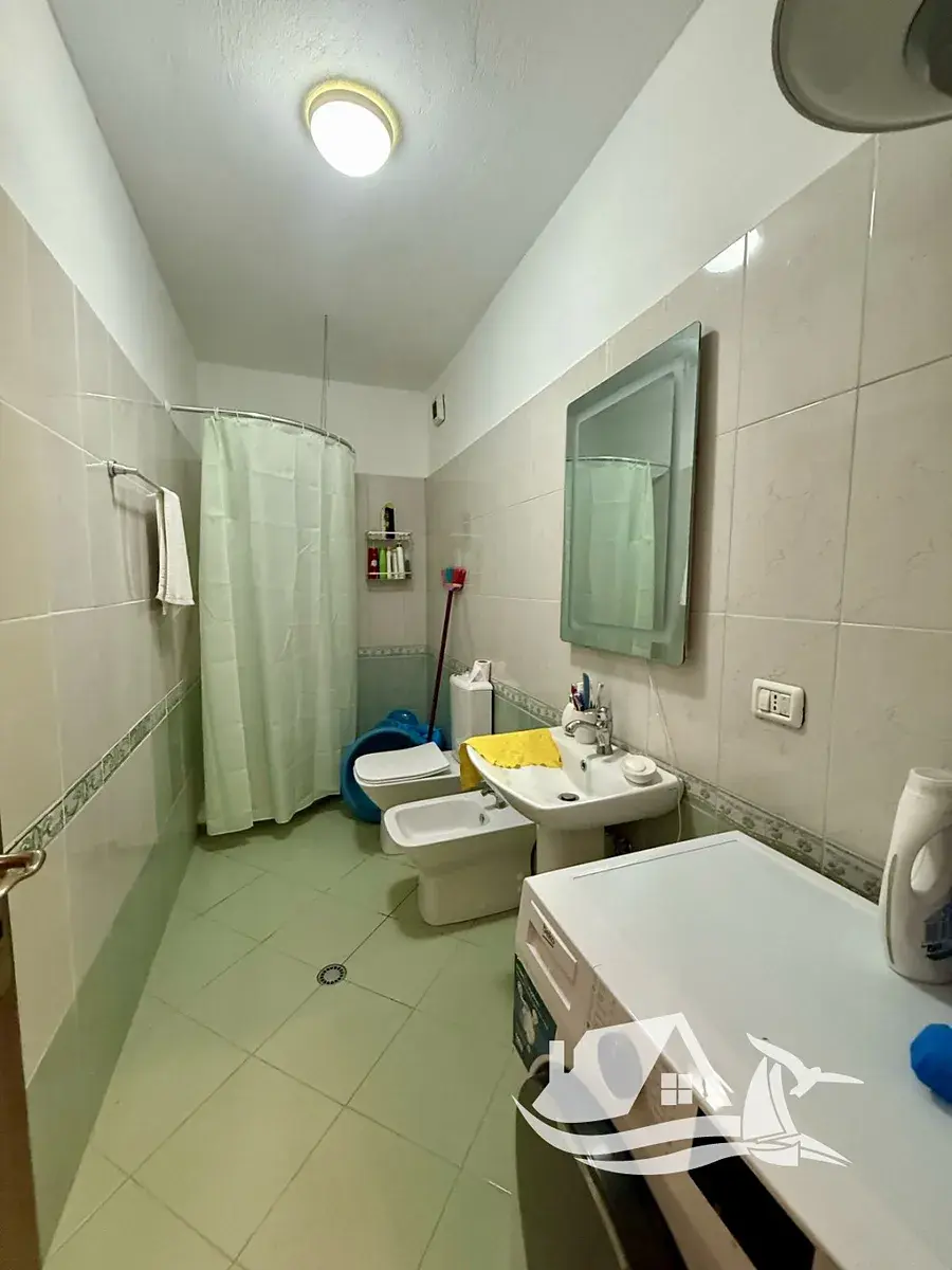 Nabízíme vám prostorný apartmán ve velkém komplexu o ploše 60 m2, 100m od moře. Nachází se ve 3 patře dobře udržované budovy s výtahem a možností parkování, má dispozici 2+kk – předsíň, obývací pokoj s přístupem na velký balkon, ložnice a koupelna se sprchovým koutem. Apartmán se prodává zařízený.