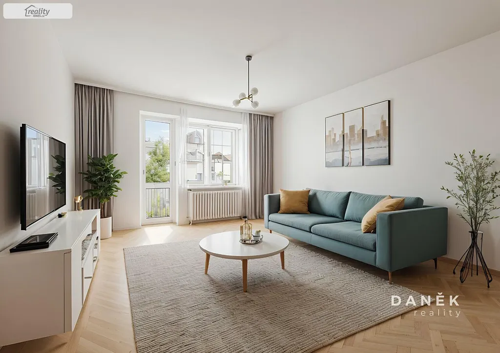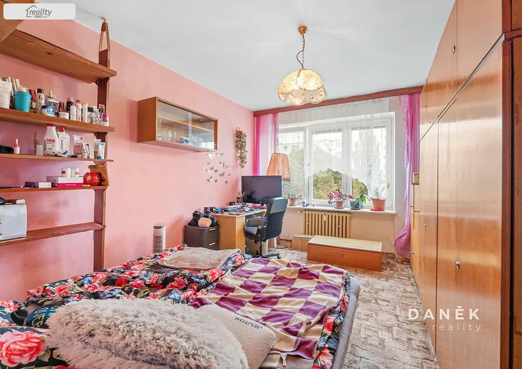 Byt je v původním stavu, vhodný k rekonstrukci podle vašich představ. Hlavní místností je obývací pokoj, odkud můžete vyjít na balkon o velikosti 2 m². Dva samostatné pokoje poslouží jako ložnice a dětský pokoj, případně pracovna. Pokoje a kuchyně jsou orientovány na východ, obývací pokoj potom na západ. K bytu také náleží velmi prostorný sklep o velikosti 11,5 m².