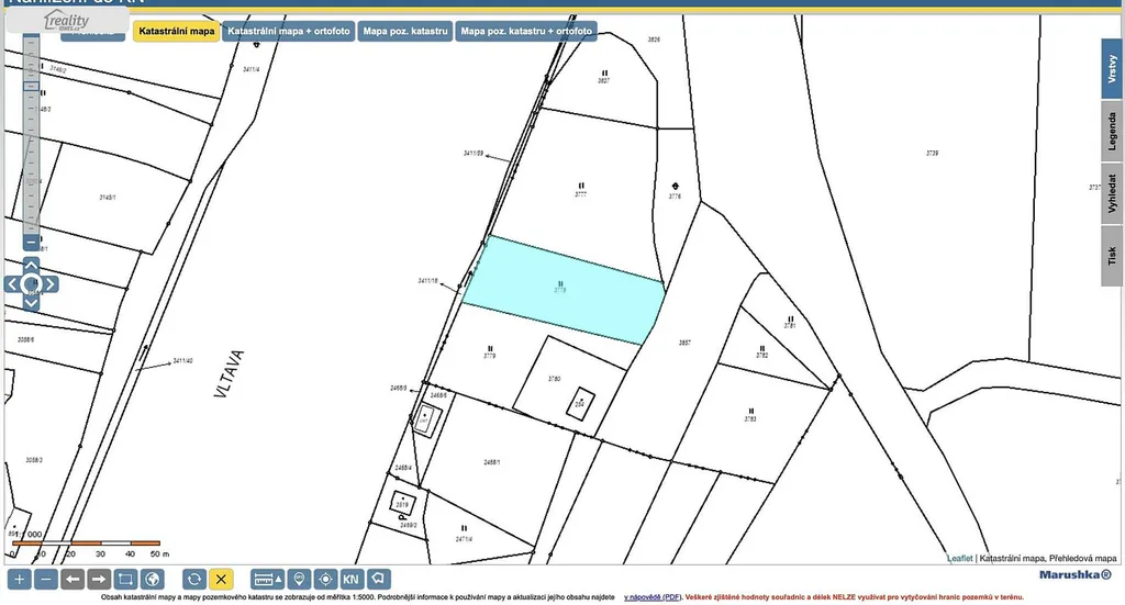 Prodej louky, Týn nad Vltavou, Hněvkovice na pravém břehu Vlt., 1648 m2 (ID: 4140608)