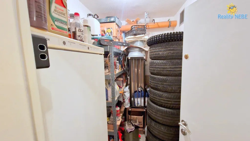 V suterénu domu je plynový kotel, který zajišťuje jak vytápění, tak celoročně teplou vodu. V bytě je k dispozici internetové připojení optickým kabelem.