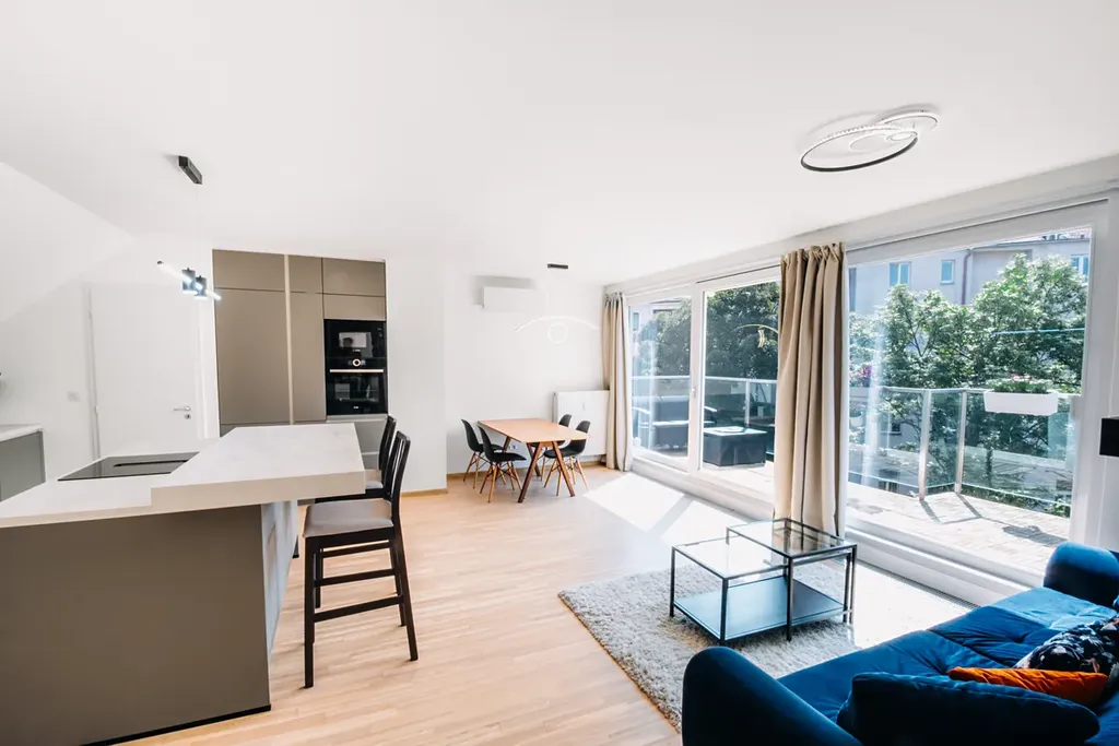 Byt prošel kompletní rekonstrukcí v roce 2024. Součástí je designová kuchyňská linka v hodnotě 1,5 milionu Kč navržená architektonickým studiem OBJEKTOR a realizovaná studiem BONAMI, vybavená spotřebiči značky BOSCH včetně varné desky se zabudovanou digestoří, vestavné vinotéky, myčky, horkovzdušné trouby, trouby s mikrovlnnou funkcí a lednice s mrazákem. Technická místnost je osazena pračkou a sušičkou značky AEG. V bytě jsou velkoformátová bezpečnostní okna, nové protipožární příčky a klimatizace. Koupelna, šatna i terasa jsou po kompletní rekonstrukci a byt bude před předáním novému majiteli vymalován na bílo. Bezpečnost zajišťuje FAB zámek.