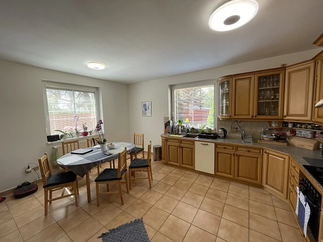 Solární panely včetně úložiště elektřiny. Zateplený dům, Úsporný provoz, Vhodný jak pro bydlení i pro podnikání. Solární panely včetně úložiště elektřiny. Praktický krb, dodá hodnotné teplo, a ekenomicky ušetří náklady. V dalším patře jsou krbová kamna; Jinak centrálně si dům vyhřejete, pomocí plynového kotle. Také je zde sauna, pro regenaraci. Místnosti mají na podlaze lakované dřevo, což je výborná, tepelná izolace. Kanalizace, Voda, napojeno na obecní. Plus Vlastní studna na pozmku; 3. podlažní ( 2. patra), 3x koupelna; 3x WC, V 1. patře, jedna místnot má přípravu pro instalaci - připojení druhé kuchyňské linky se spotřebiči. Garáž pro dvě auta. Jen 16 min. autem od města Mělník.