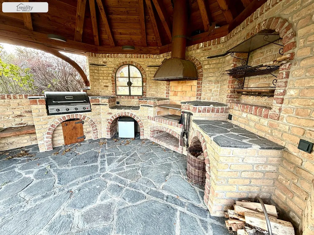 Altán s venkovním krbem a posezením
