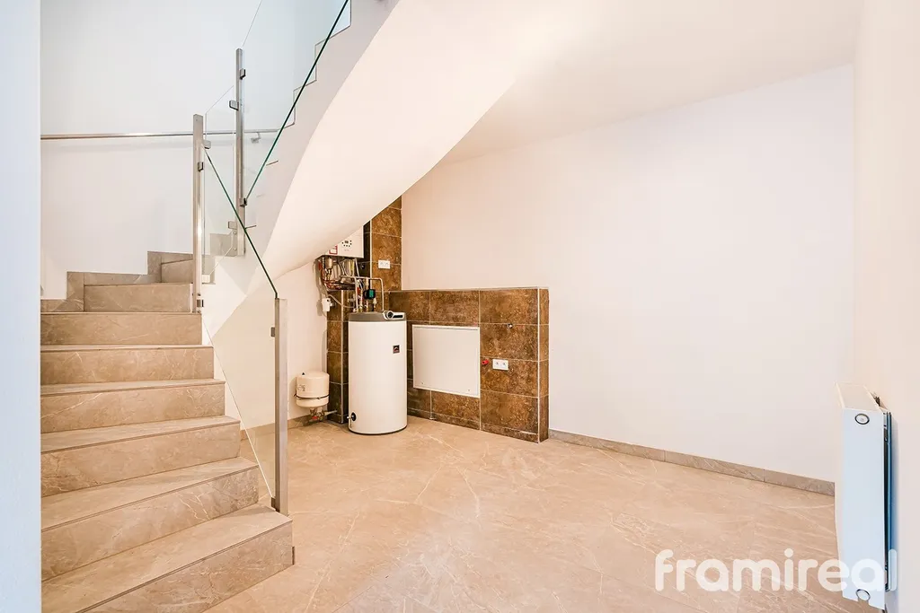 Suterén domu překvapí svou praktičností a variabilitou využití. Nachází se zde technická místnost s plynovým kotlem, moderní systém doplňování retenční nádrže, který v případě nedostatku srážek dokáže využít tzv. šedou vodu z domu, čímž významně šetří vodní zdroje i provozní náklady. K dispozici je také toaleta se sprchou a dvě další plnohodnotné místnosti. Ty lze využít například jako domácí posilovnu, pracovnu, hernu, ateliér nebo klidné zázemí pro podnikání. Možností využití je skutečně mnoho.