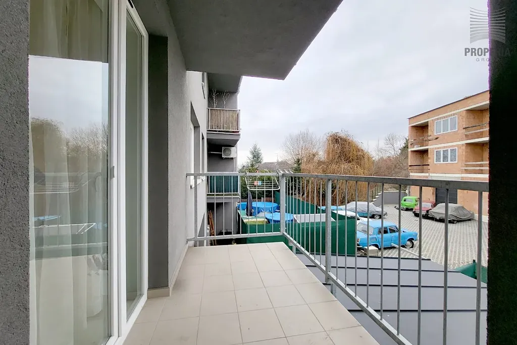 Dispozice vstupní chodba s úložným prostorem, obývací pokoj s kuchyní (vybavenou spotřebiči) a balkonem. Samostatná prostorná ložnice, šatna a v chodbě možnost pracovního koutku.