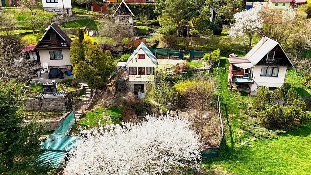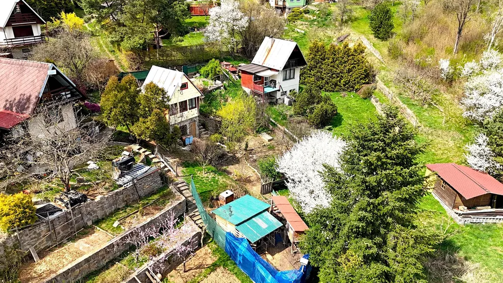 Nemovitost se nachází v klidné zahrádkářské kolonii. Chata je částečně zděná a částečně dřevěná, má sedlovou střechu s plechovou krytinou. Zastavěná plocha činí 16 m². Odhadovaná užitná plocha cca 35 m2. Objekt je dvoupodlažní s obytným podkrovím. V suterénu se nachází WC, sprchový kout, kamna, bojler, nádrž na vodu a sklep. V 1.NP je obývací pokoj s kuchyňským koutem, v podkroví prostor na spaní. Chata je napojena na elektřinu (vlastní elektroměr), voda přivedena ze společného zdroje zahrádkářské kolonie, odpadní vody svedeny do žumpy.