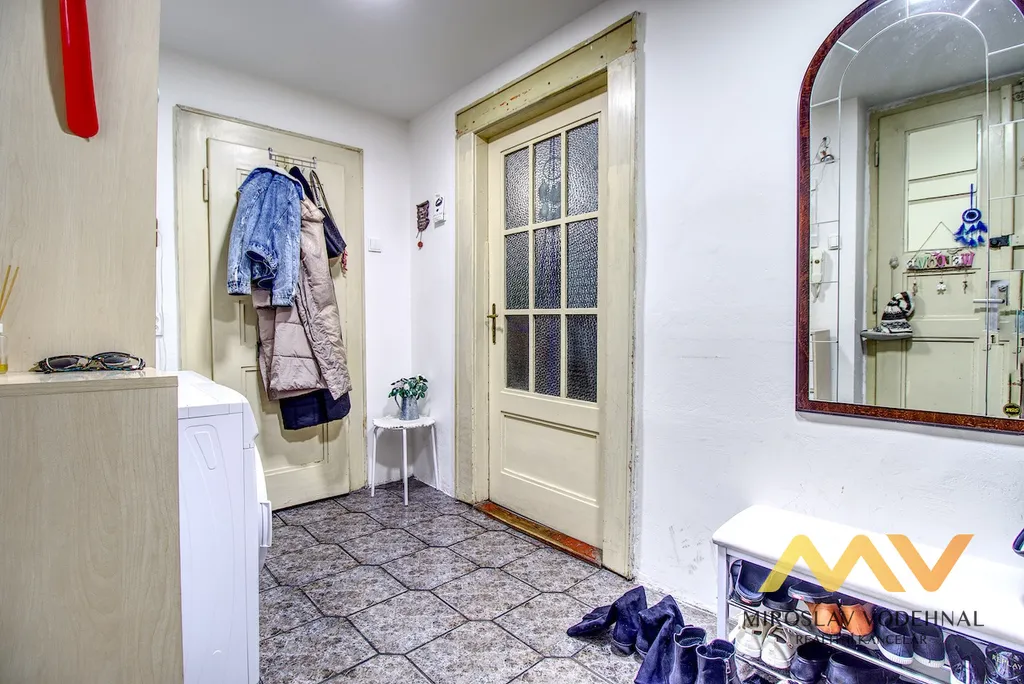 Dispozice: 2x pokoj, kuchyň, koupelna, WC, předsíň. Jedná se o částečně zařízený byt s průchozími pokoji, nová plovoucí podlaha, nová plastová okna. Kuchyň je vybavena starší kuchyňskou linkou s novým komb. sporákem, lednicí s mrazákem, mikrovlnnou troubou. V obývacím pokoji je, jídelní stůl se židlemi. V ložnici velká šatní skříň. Koupelna s vanou, toaleta je samostatně. V prostorné předsíni je prostor na pračku i sušičku prádla. Internet zaveden (300 Kč/měsíc), vytápění lokální (nové wafky), ohřev vody el. bojlerem. Ve vnitrobloku za domem je zeleň a hřiště. Sklep není k dispozici.