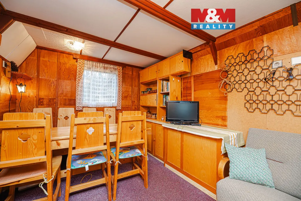 Chata má dvě nadzemní podlaží, přičemž disponuje dvěma místnostmi a balkónem, který nabízí krásné výhledy do okolní zeleně a vytváří příjemné místo pro relaxaci. Užitná plocha činí 34 m², celková výměra pozemku je 394 m² – dostatek prostoru pro venkovní aktivity, posezení či zahradničení.