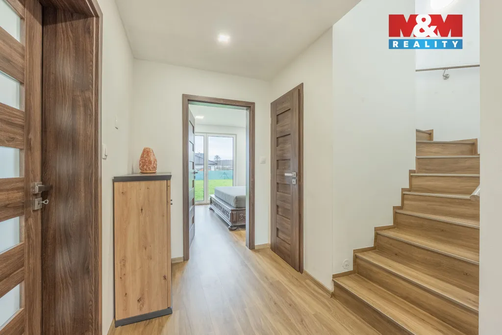 Takto může vypadat Váš nový domov. Přibližně 25 minut z centra Mladé Boleslavi, v klidné obci Vlčí Pole, nabízíme k prodeji dokončenou novostavbu, která spojuje moderní architekturu, kvalitní materiály a velkorysý prostor. Nemovitost je připravena k okamžitému nastěhování. Majitelé se z osobních důvodů stěhují na Moravu, což vytváří jedinečnou příležitost k pořízení této výjimečné rezidence. Dům s užitnou plochou 213 m² je zasazen do rozlehlé, udržované zahrady o velikosti 1 480 m² a disponuje prostornou garáží o výměře 44 m². Dispozice domu nabízí šest obytných místností rozložených do dvou nadzemních podlaží. Stavba je realizována z kvalitního konstrukčního systému Liapor, který zajišťuje stabilní a příjemné vnitřní klima po celý rok. O efektivní vytápění se stará tepelné čerpadlo, podlahové topení je instalováno v celém domě a v obývacím pokoji je příprava na krb. Osobní návštěva Vám umožní ocenit kvalitu a prostor této nemovitosti. Prosím kontaktujte mě pro termín prohlídky.