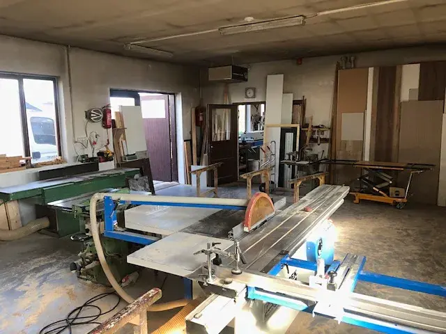 Dílna je zkolaudovaná pro truhlářskou výrobu. Budova se skládá z výrobních prostor, kanceláře, šatny, sociálního zázemí včetně WC a sprchy.