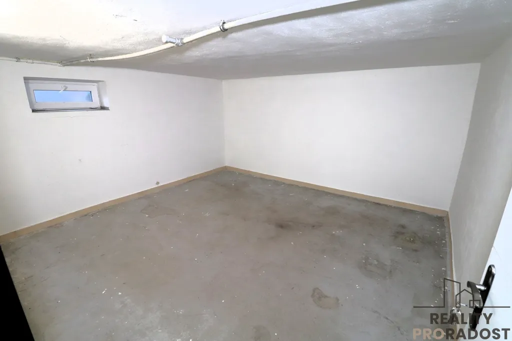 Bonus: Prostorný sklep (cca 17 m²) a průjezd – kočárky, kola, lyže, vše má své místo.
