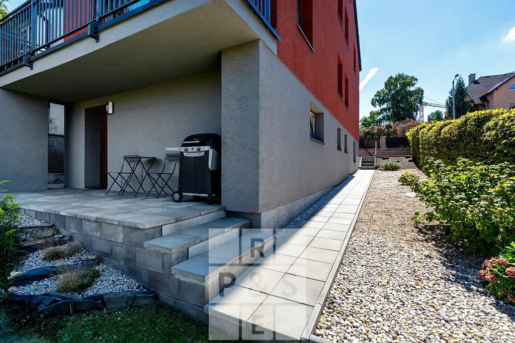 1 NP: byt 2+kk o velikosti 68 m² s terasou 10 m² + dvě místnosti využitelné jako dílna, sklad nebo technické zázemí. Tento byt má samostatný vchod přímo ze zahrady.
