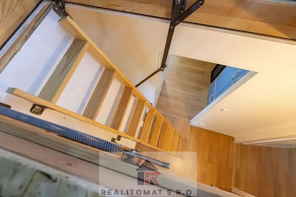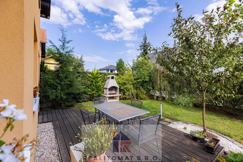 1. nadzemní podlaží: Zádveří s vestavěnou skříní, koupelna se sprchovým koutem a WC, kuchyňský kout vybavený vestavnými spotřebiči, obývací pokoj s přímým vstupem na terasu do udržované zahrady o velikosti 453 m2. Na pozemku se nachází vydlážděné venkovní parkovací stání pro další 2 auta, celkem 36 m2.