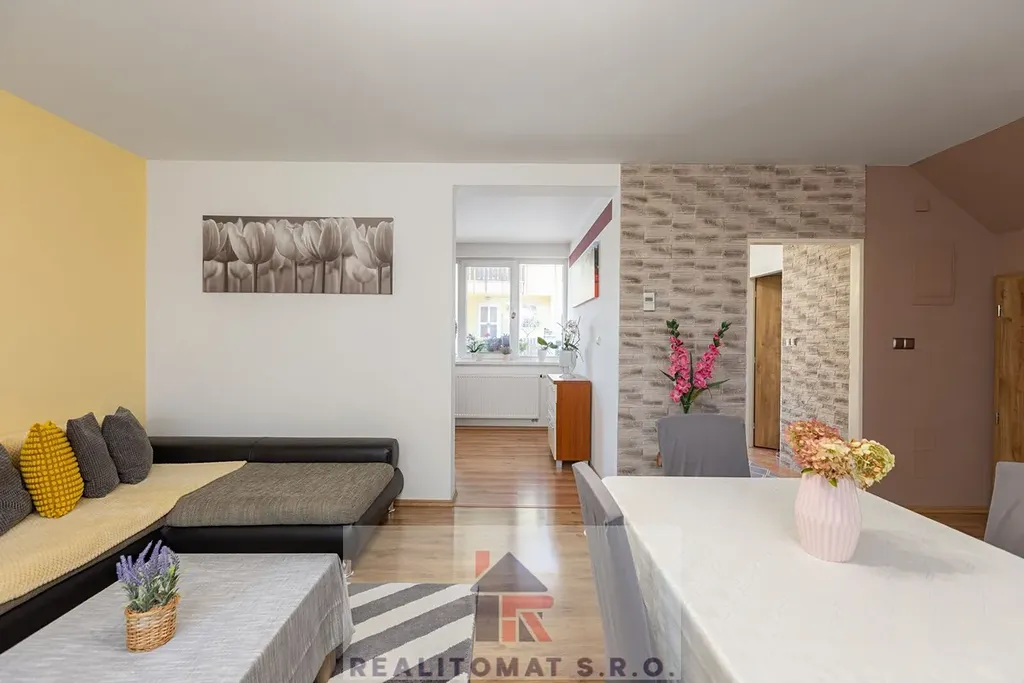 Podlahy a okna: V pokojích plovoucí laminátová podlaha, v předsíni a koupelnách keramická dlažba. Okna mají izolační plastová dvojskla a jsou na nich instalovány žaluzie.
