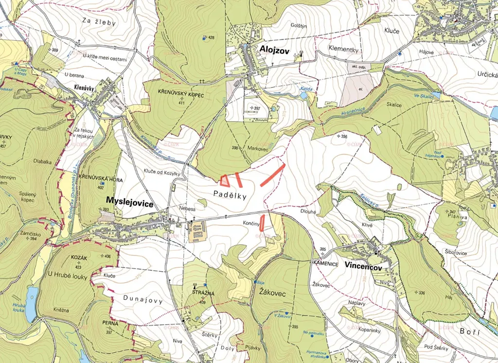 Nabízíme k prodeji ornou půdu v katastrálním území Myslejovice v okrese Prostějov.