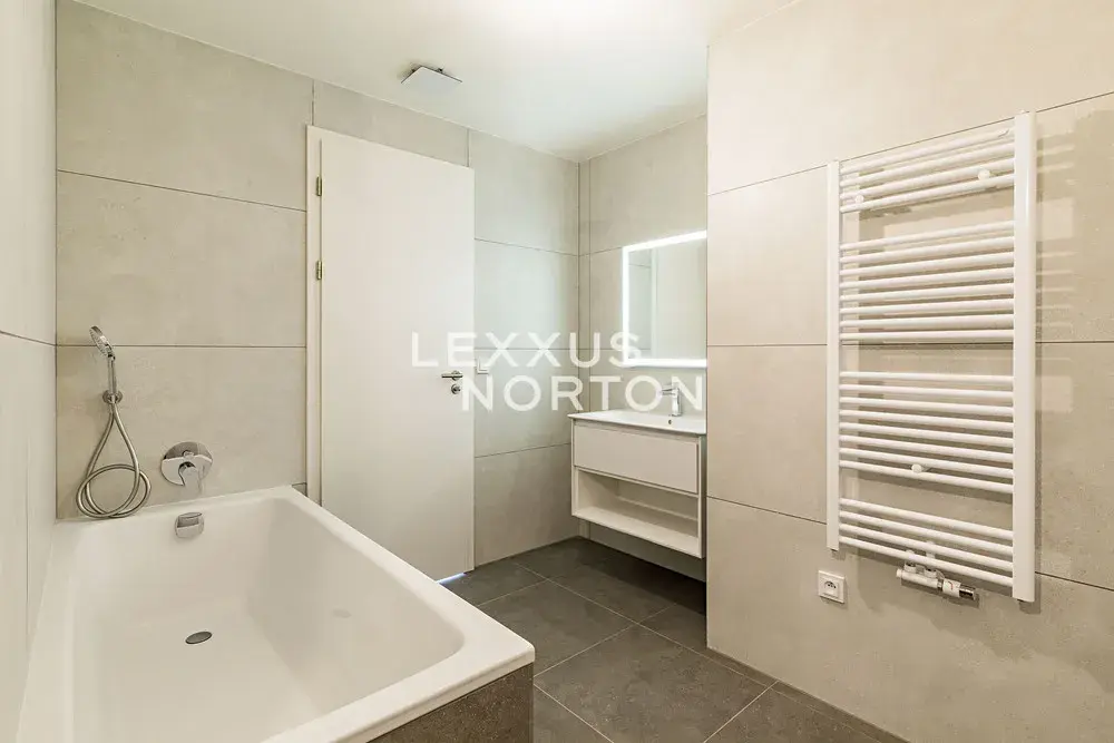 Byt je dokončen ve vysokém standardu. Třívrstvé dubové podlahy, velkoplošná okna s antracitovými plast-hliníkovými rámy, venkovní žaluzie, v koupelnách pak velkoformátové obklady La Futura a sanita prémiových značek Ideal Standard, Kaldewei a Hüppe. Byt je vytápěn plynovým kondenzačním kotlem s užitím podlahového vytápění. K dispozici je klimatizace.