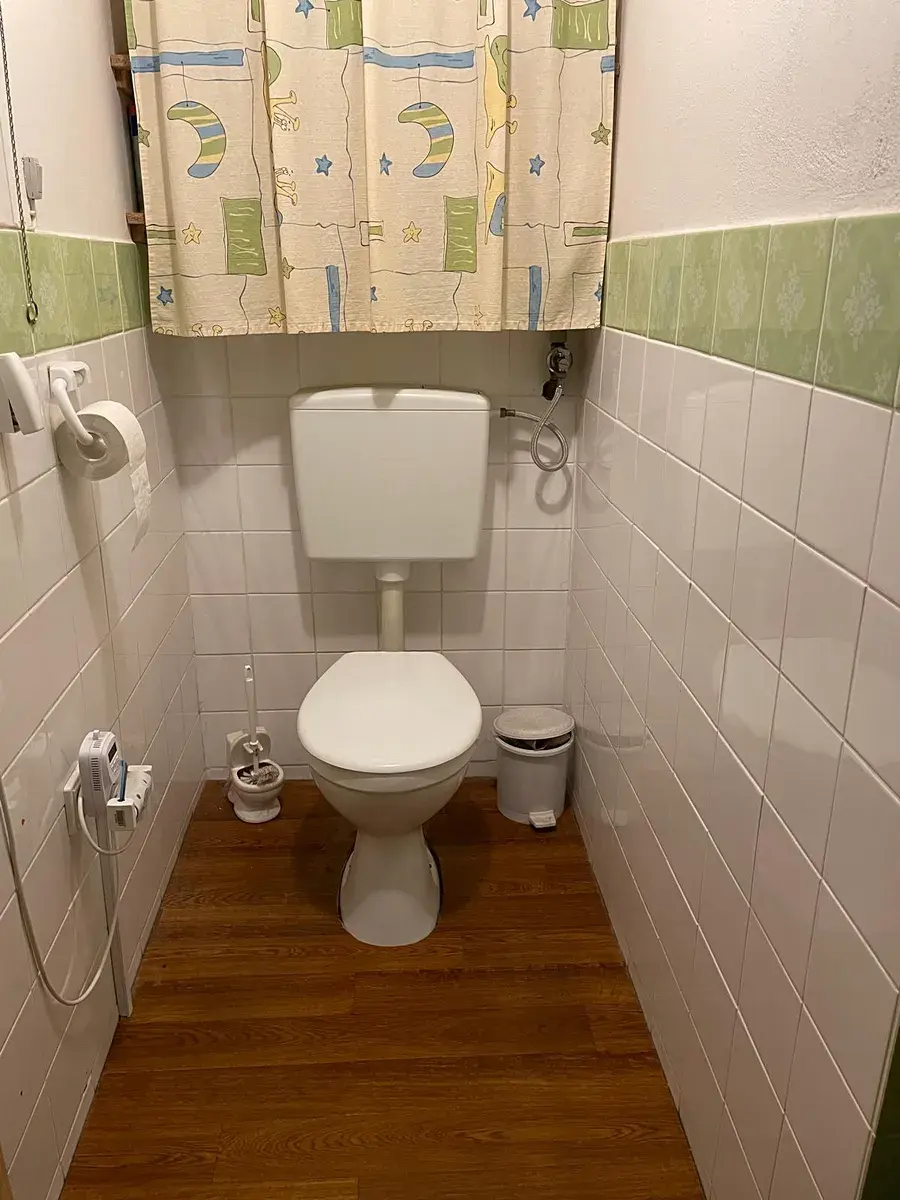 Další povrchy: v chodbě beton, PVC a koberec s podkladem, v kuchyni dřevotříska s PVC, toaleta má dlažbu, PVC a podlahové vytápění.