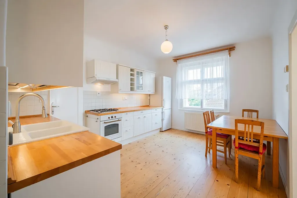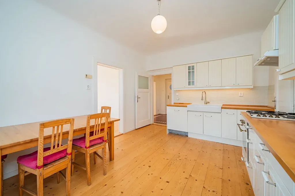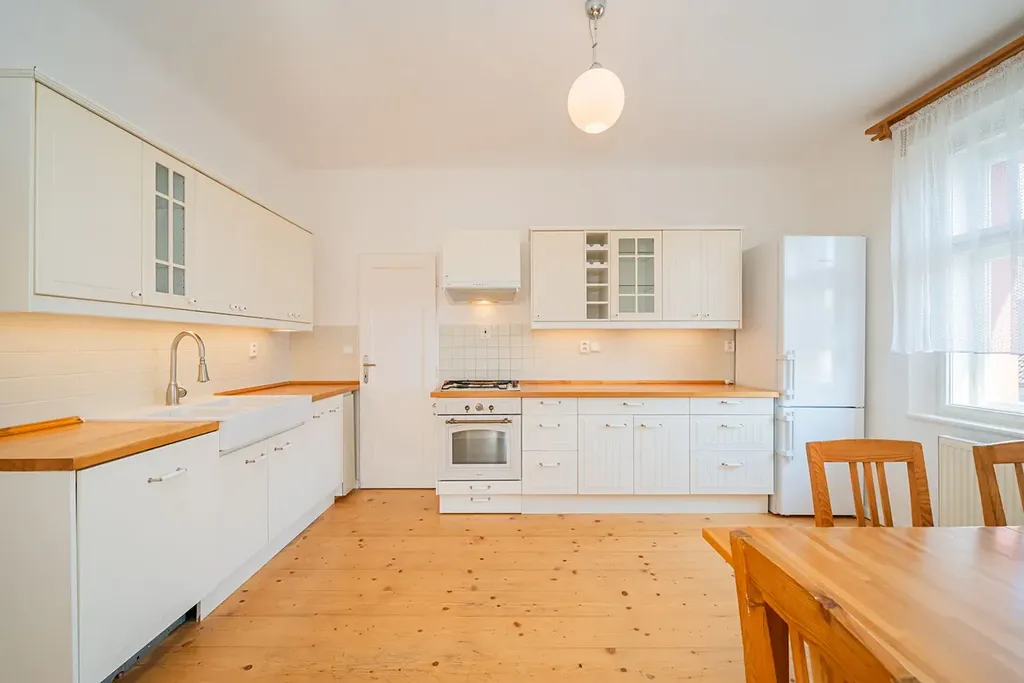 Nabízíme od 1. 2. 2026 (případně dříve – na dotaz) k pronájmu prostorný byt 5+1 ve stylové prvorepublikové vile ze 30. let ve vilové čtvrti Prahy 4 – Modřany, ulice Nečova. Ideální pro rodiny vracející se do Prahy ze zahraničí nebo pro expaty hledající autentické bydlení s charakterem. Nabídka je obzvlášť vhodná pro rodiny s dětmi díky blízkosti Prague British International School – Libuš campus.