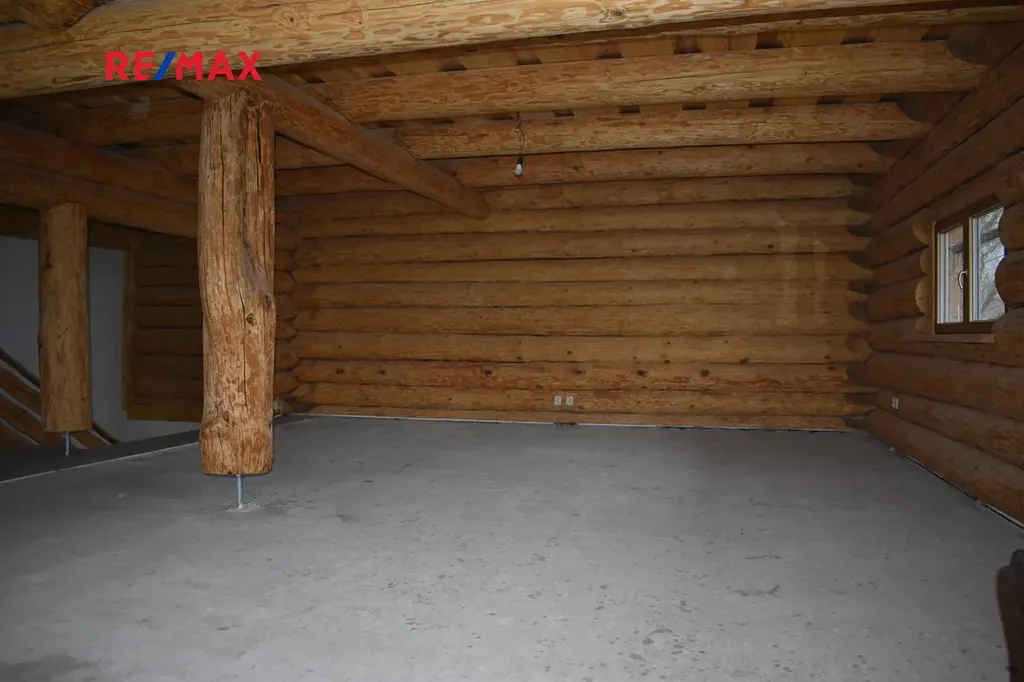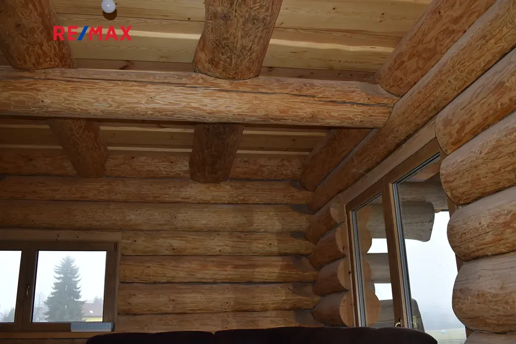 Srub - na vlastní stavební parcele 10.980 m² (změna ÚP č.2), zastavěná plocha srubu 300 m², Rok výstavby-2025. Konstrukce: základová deska a zděné přízemí/suterén, masivní kulatina, dřevostavba, zatepleno