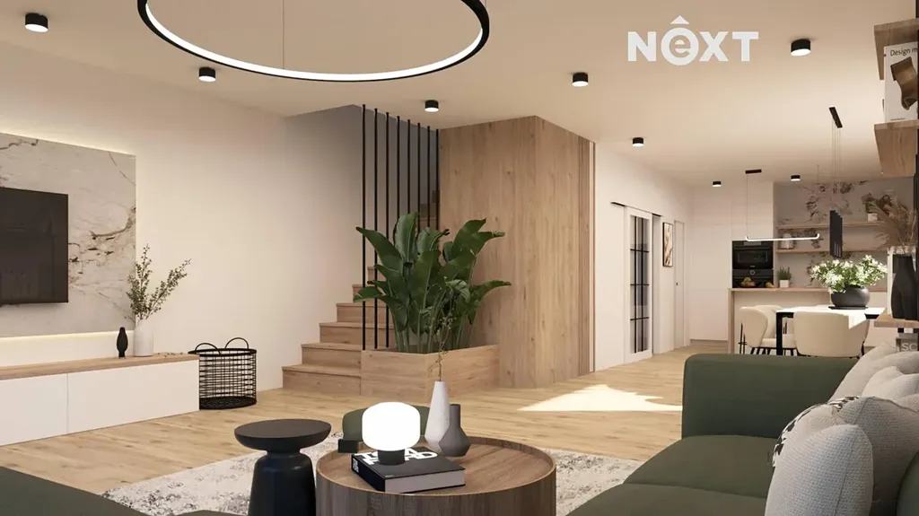 Velkým benefitem domu je také nadstandardní množství úložných prostor – k dispozici je prostorný sklep a rovněž dvě samostatné šatny, které výrazně zvyšují komfort každodenního života.