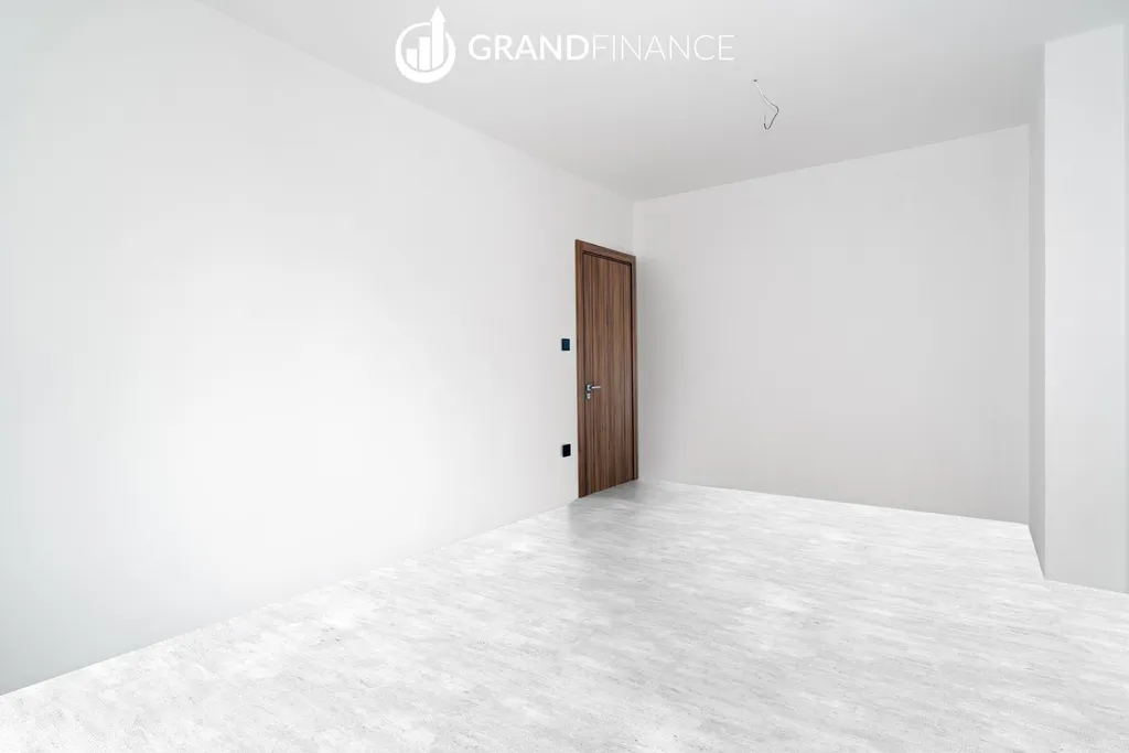 Interiér bytu je řešen v moderních a neutrálních tónech. Kuchyňská linka zatím není instalována, což dává novému majiteli možnost navrhnout si kuchyň přesně podle vlastních představ.