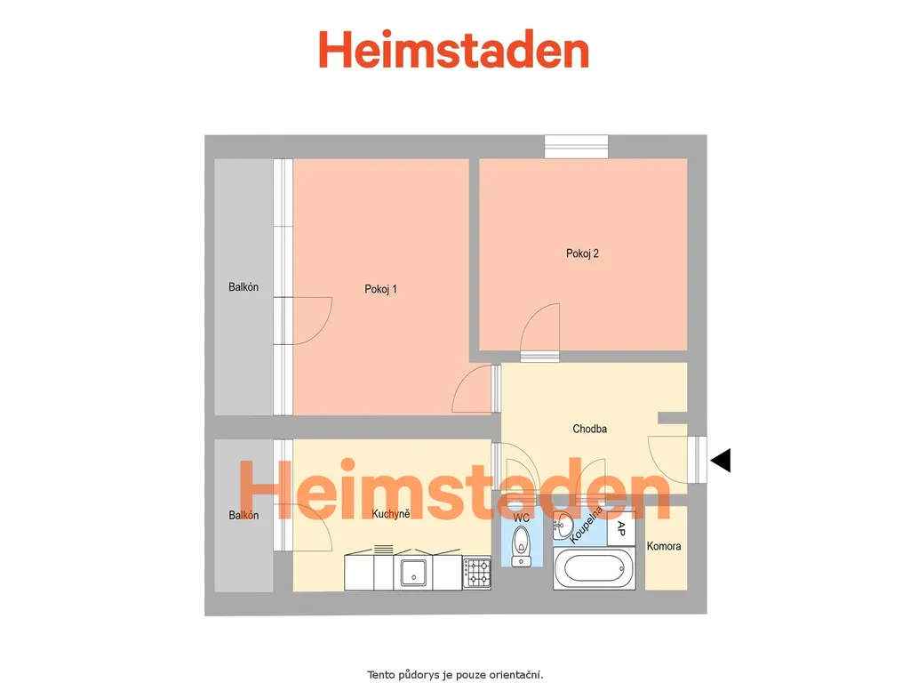 Dispozice bytu je velmi praktická – dva samostatné, neprůchozí pokoje zajišťují dostatek soukromí a prostorná předsíň bez problémů pojme vestavěné skříně i úložné prostory. Celý byt působí vzdušně, funkčně a má velký potenciál stát se skutečným domovem.