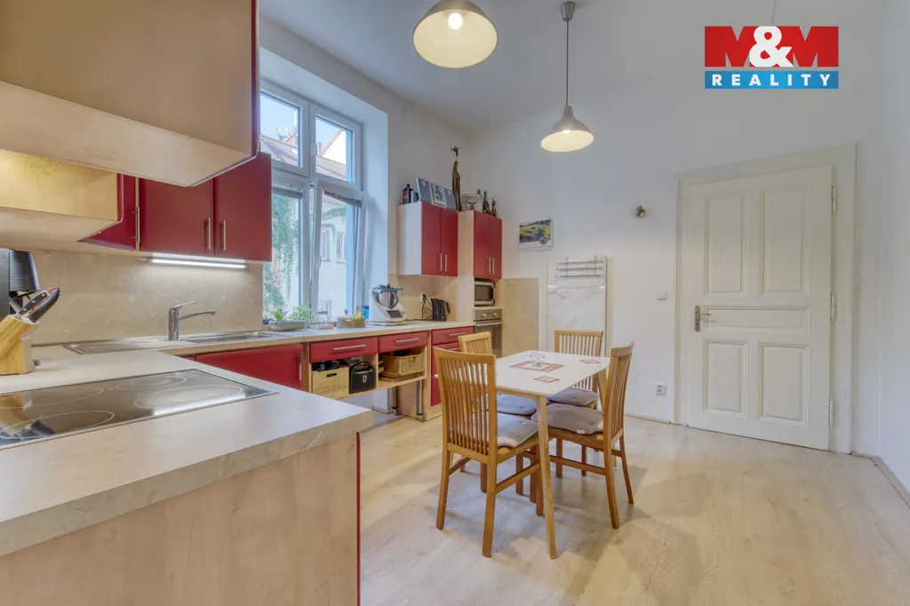 Hledáte bydlení s atmosférou, kterou novostavby nenahradí? Prostorný byt 3+1 (112 m²) v 1. patře secesního domu z počátku 20. stol. v prestižní Havlíčkově ul. v Plzni vás nadchne vysokými stropy, velkými okny a původními prvky – dvoukřídlými kazetovými dveřmi, dřevěnými podlahami a štukovými lištami. Reprezentativní chodba s klenutými stropy, zdobnými štuky a původní dlažbou navodí noblesní atmosféru hned při vstupu. Dům po citlivé rekonstrukci spojuje historické kouzlo s moderním komfortem. Dispozice: světlý obývací pokoj, prostorná ložnice, další pokoj pro děti či pracovnu, samostatná kuchyň s místem pro jídelní stůl, koupelna, WC. K bytu patří 2 sklepy, přístup na uzavřený dvůr se zelení, posezením a prostorem pro grilování. Klidná lokalita v širším centru nabízí pěší dostupnost MHD, obchodů, škol, parků, kaváren, restaurací i kulturních zařízení. Ideální pro milovníky historie, rodiny i jako investice s potenciálem růstu hodnoty.