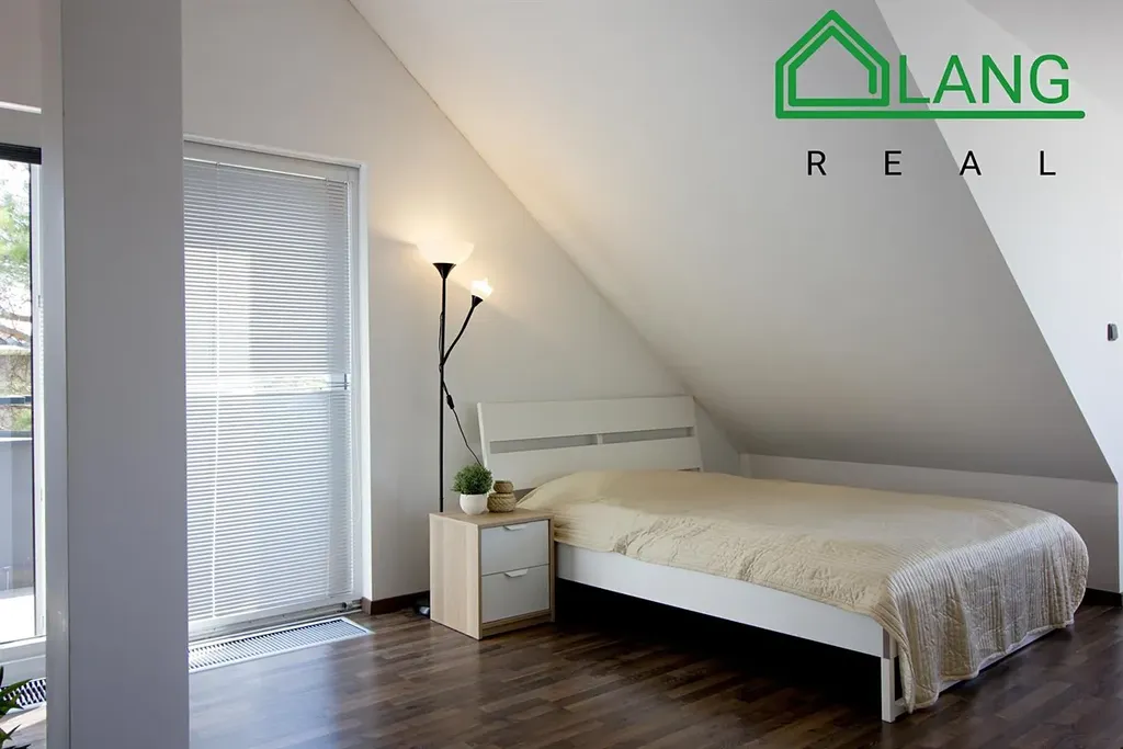 Celý prostor je prosvětlen francouzským oknem, kterým se vstupuje na velkou terasu o ploše 10 m2. Terasa je orientovaná do zahrady a poskytuje klid, soukromí a krásny výhled.