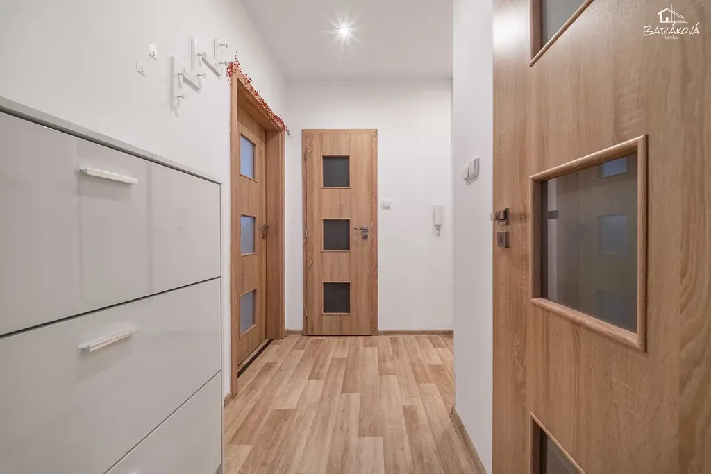 Samotná bytová jednotka prošla v roce 2015 kompletní rekonstrukcí. Byly zde provedeny nové rozvody elektřiny, vody a odpadů, položeny nové podlahové krytiny, instalována kuchyňská linka s vestavnými spotřebiči, vybudována nová koupelna a praktická šatna, která výrazně šetří prostor. Samozřejmostí jsou také nové interiérové dveře a obložky. K bytové jednotce patří koje v mezipatře a možnost využít kočárkárnu