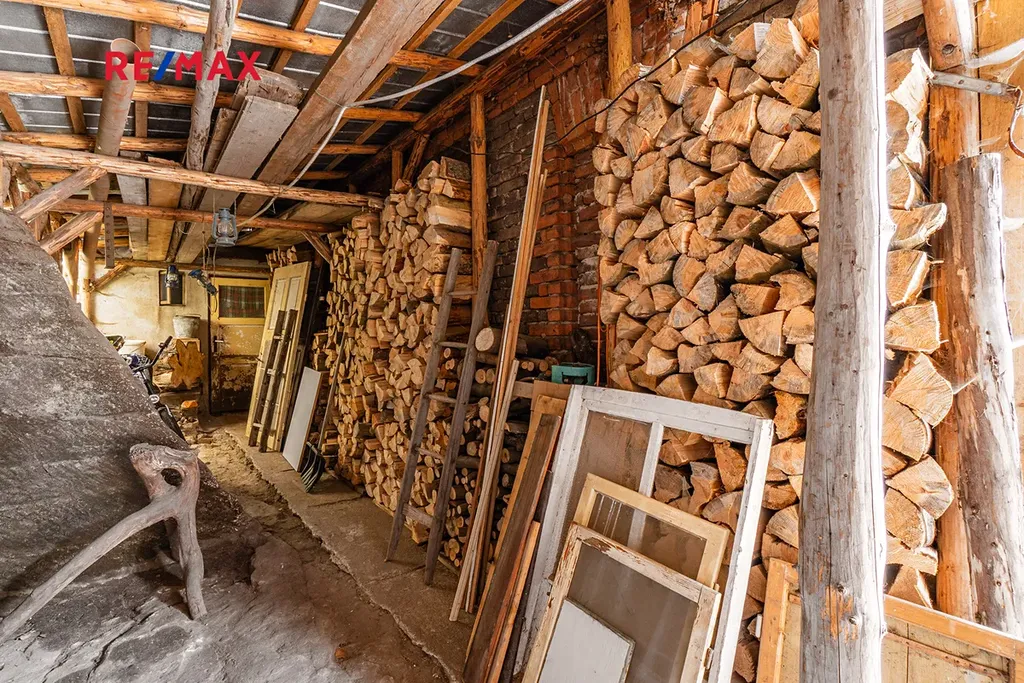 • Chalupa má suchý půdní prostor, zdravý krov a dobrou plechovou střechu.