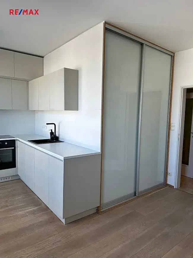 Srdcem bytu je prostorný obývací pokoj s kuchyňským koutem, který je vybaven myčkou, indukční deskou, troubou, digestoří a lednicí. Obývací pokoj je vybaven vestavěnou skříní. V předsíni se nachází rovněž úložná skříň a vstup do koupelny s pračkou a komory. K bytu náleží také balkon ( 8,8 m²), kde si můžete vychutnat ranní kávu nebo večerní relaxaci. Vytápění bytu je ústřední. Byt se pronajímá částečně zařízený a je připravený k nastěhování od 01.02.2026.